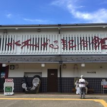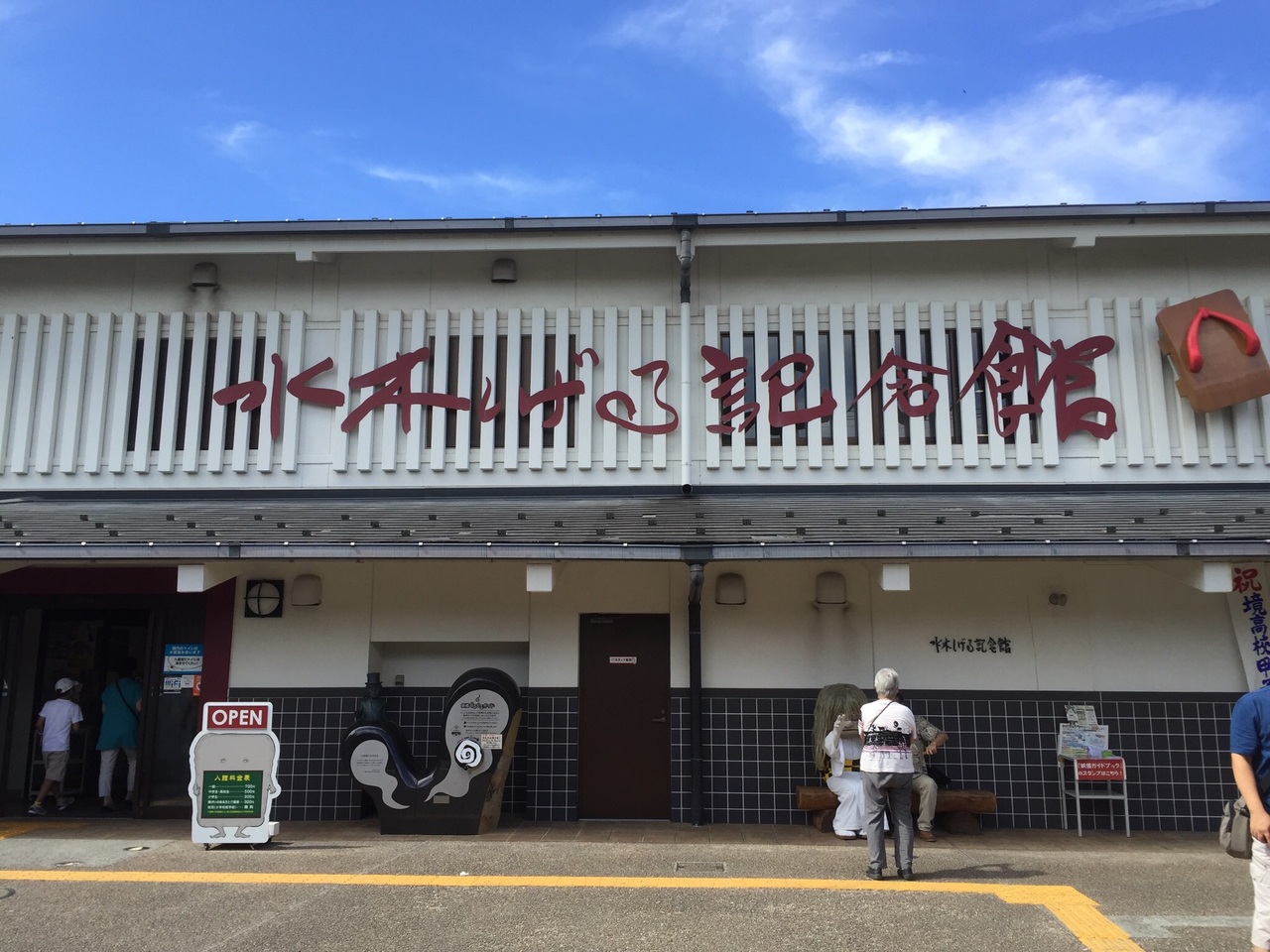記念館の外には砂掛けババアやネズミ男の着ぐるみを来た人(いや妖怪?)がいて一緒に写真を撮ったり握手したりしてくれます。