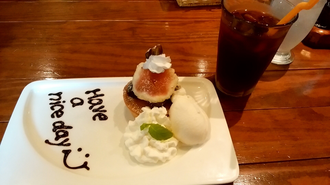 アイスクリームと生クリームを添えてチョコメッセージ付きで出してくれるので単品よりはお得です。