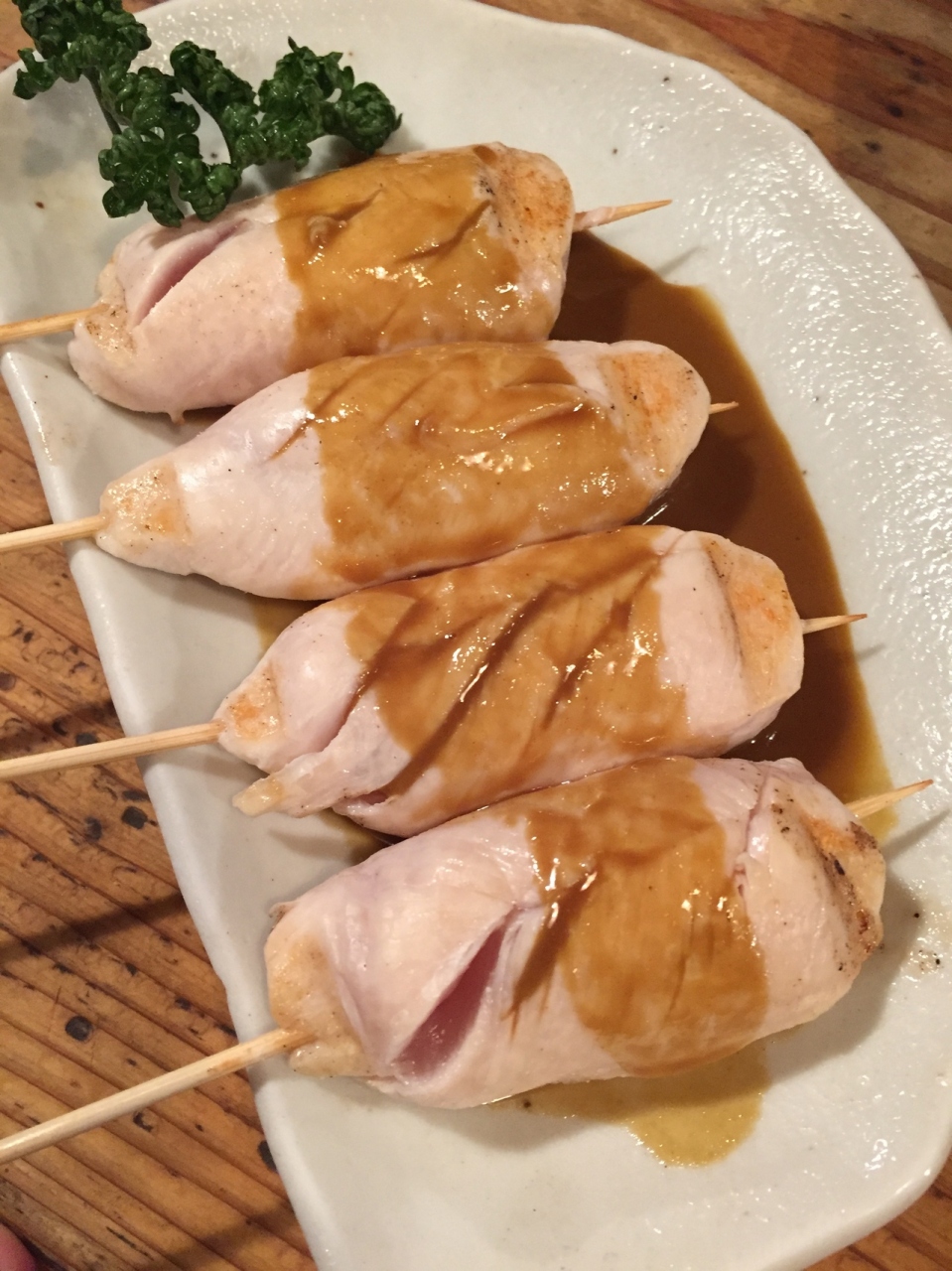 また、しぎ焼きというササミの表面を焼き、わさび醤油で食べる焼き鳥も絶品です。