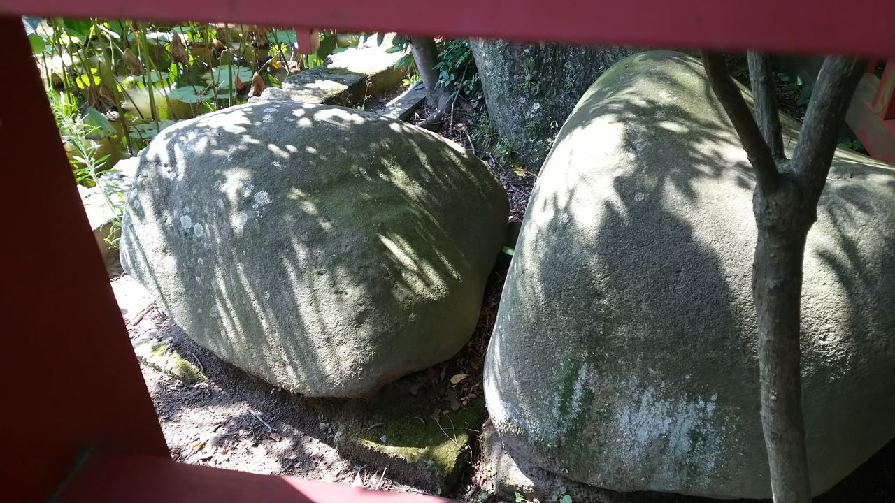 政子さんが妊娠中に頼朝公と一緒に来て座った石とのこと。