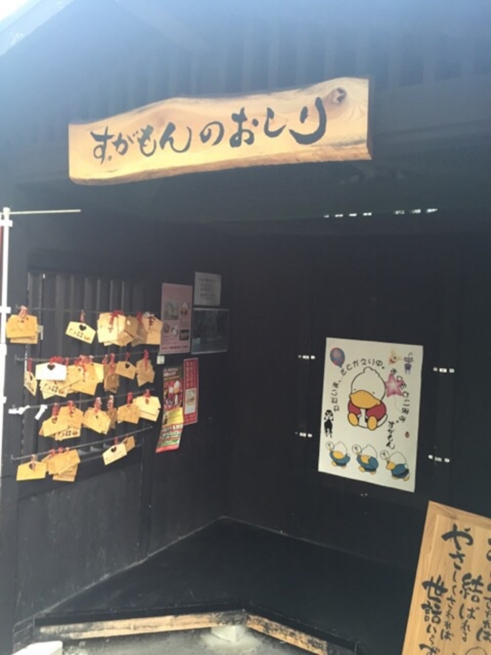 巣鴨地蔵通り商店街の公式マスコットであるすがもんですが、そのすがもんのおしりと称される丸い大きなオブジェが巣鴨地蔵通り商店街にあります。前に訪問した時には小さな小屋の中にあって、ふわふわなおしりを触りながら、記念撮影をする人が絶えませんでしたが、たまたま訪問時には小屋の中にありませんでした…どこかに出張展示中なのでしょうか…