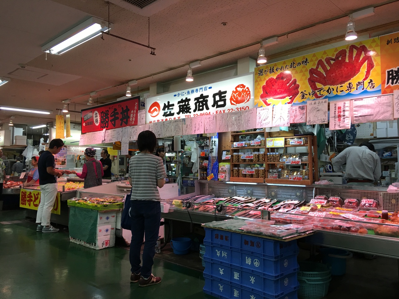 釧路市内の市場で、ほとんどの店舗は観光客を目当てにしている商売でした。施設内はとても賑やかで観光客には威勢のいい声がかけられます。この市場での主目的は勝手丼を食べることで、新鮮な魚介類を食べられてとても良かったです。ただし観光地価格になっている事が多少気になりました。