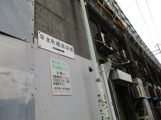 JR神田駅北口からJR山手線沿いに秋葉原駅方面へ歩いて7分ぐらいで平永橋架道橋と東松下橋架道橋の間の靖国通り手前に平永町橋高架橋があります。平永町橋高架橋は赤レンガの壁面でなくコンクリートそのままなのでガード下は倉庫として使われている感じで美観は良くないです~