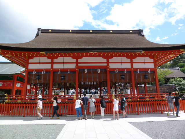 今日は京都・伏見稲荷大社に来ています。アクセスはJRが一番良く駅の目の前にその鳥居があります。参道を歩くと楼門がありそしてその先に重要文化財の本殿があります。伏見稲荷大社は、商売繁盛・家内安全・五穀豊穣・学業成就・縁結びのすべてを聞き受けてくれる万能の神様で初詣だけでも270万人の参拝客が訪れています。また外国人観光客に人気の理由としては千本鳥居もそのひとつです。鳥居になじみのない外国人が一度に沢山の鳥居、幻想的気分になるのは当然でしょうね。