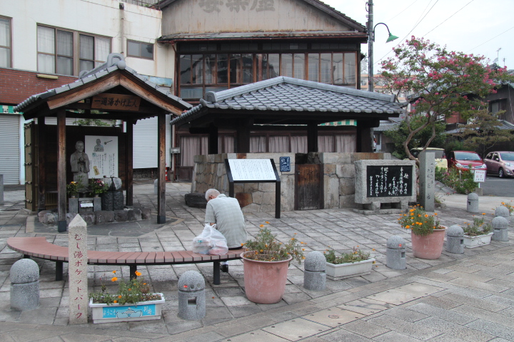 自分の具合の悪いところと同じ場所のお地蔵さんの部位にお湯をかけてお願いする一遍湯かけ上人が広場内にあります。むし湯跡もありますので見逃さないように。