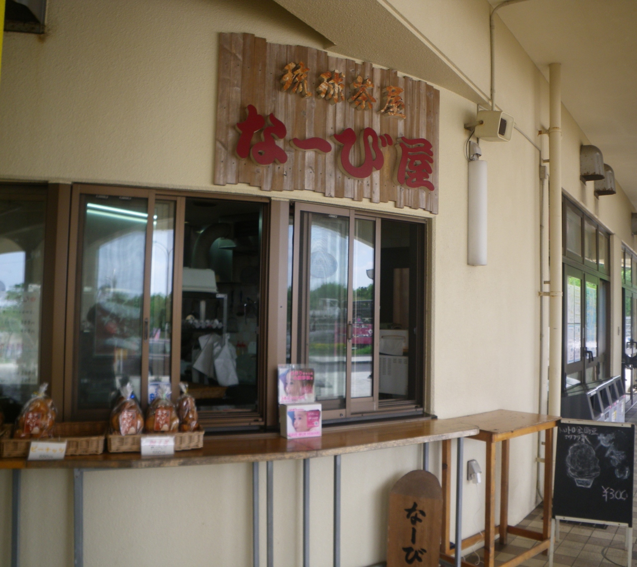 道の駅かでなにある甘味屋さんです。手作りのサーターアンダギーがおススメのようで、プレーンの他にピーナッツ、シナモン、黒糖などの種類がありました。お土産用に袋に入ったものも販売しています。1個のサイズがかなり大きかった!