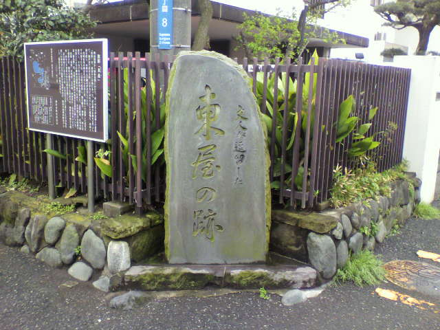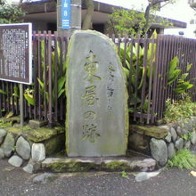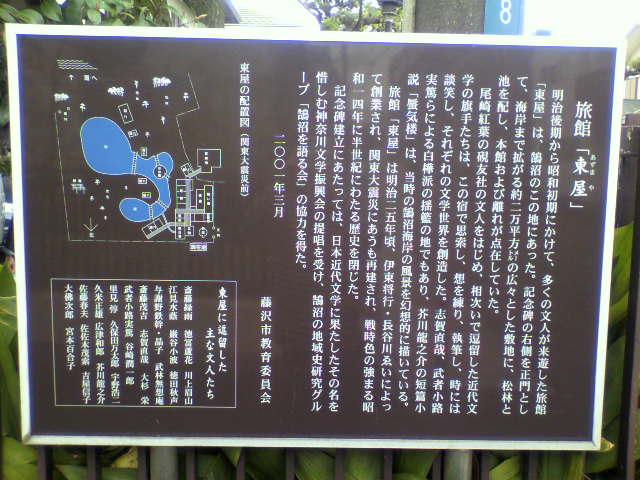 小田急線の鵠沼海岸駅から海のほうへ少し住宅地を入ったところに、石碑がたっていました。そのすぐそばには、案内板がありました。