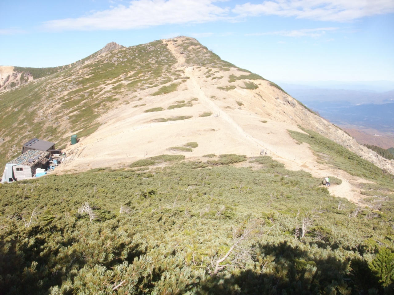 私は根石岳の頂上直下に建つ根石岳山荘に毎年出かけていますので、根石岳には度々登っています。頂上からの展望は抜群で、北アルプスも、中央アルプスも見えますが、ここからは御岳が大きく見えます。