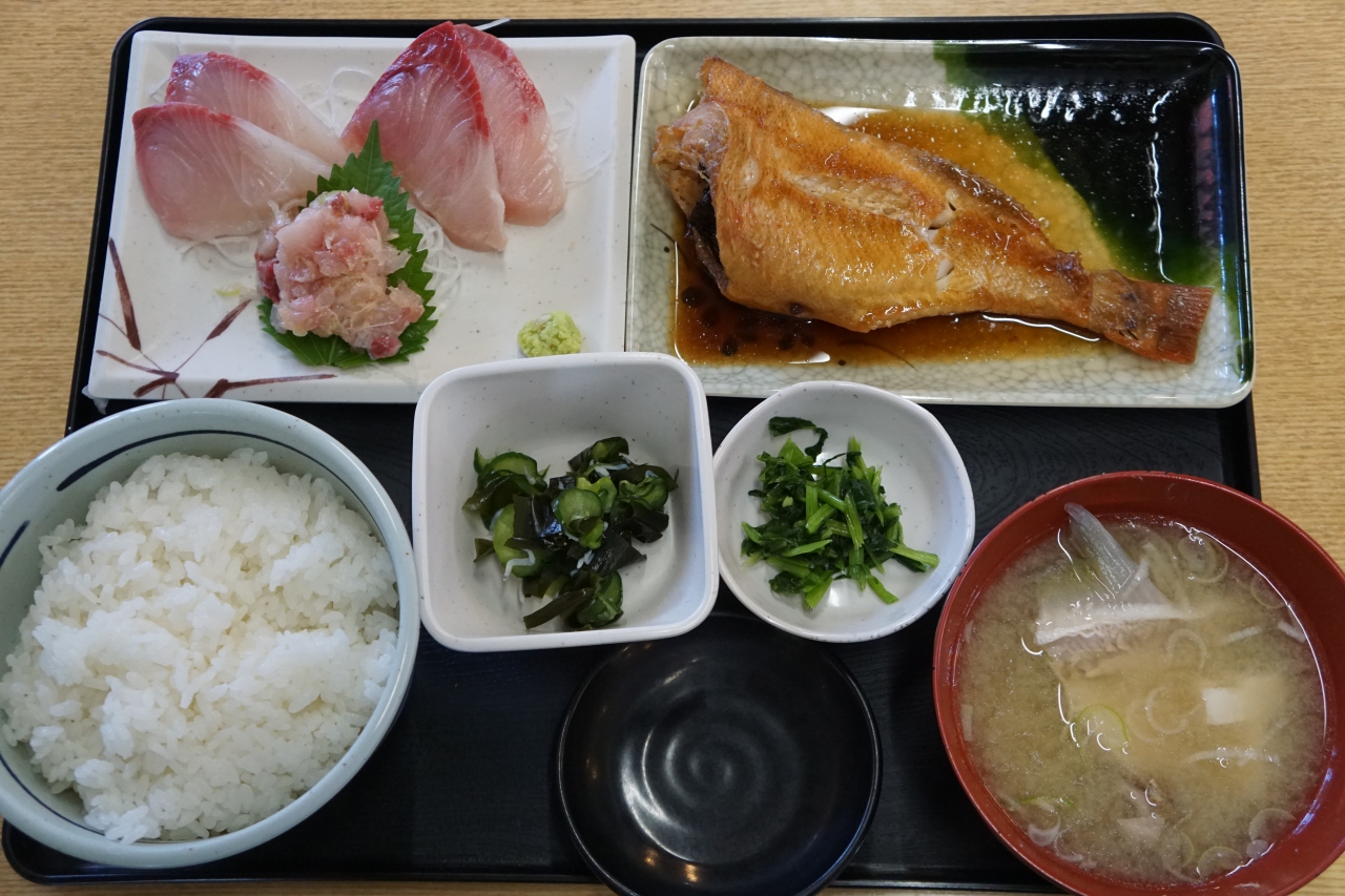 刺身と煮魚のとうちゃん御膳1300円をいただきました。かあちゃん御膳は煮魚がかき揚げになっていて、この二つがここの看板メニューです。アカウオの煮魚でしたが、脂も乗っておいしいですね。刺身もキラキラ光っていて新鮮さを感じます。期待通りの手堅い海鮮定食でした。なお、水かお茶はセルフサービスになってますが、他はほかと一緒です。