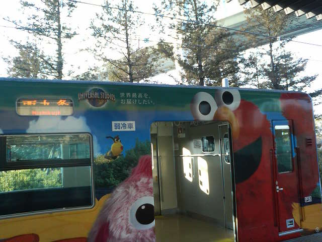 USJへ行くのに便利で、JR大阪駅から直通する特別列車やUSJのキャラクターをラッピングした車両が走っていたりと、利便性も楽しさもあり、見ているだけで楽しげでした。