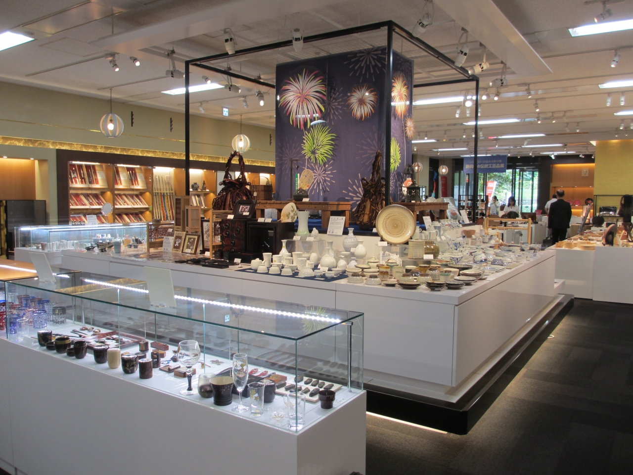 青山通りに面しているビルの1階にあります。伝統工芸品が産地別に展示されています。高価な品もありますが、日常生活で使える品もあり、全国各地の品が集められていて見るだけでも楽しくなります。入り口脇に職人の実演販売コーナーがあります。展示場のような入口で入りにくかったのですが、入ってみると個人向けの店であることが分かりました。気に入った品があったら写真を撮っておいて後日品名を問い合わせれば取り寄せしてくれます。海外へのプレゼントに良い品が一カ所に揃っている便利な店です。さっそく箱根寄木細工の品を購入したところ、英語の説明書を付けてくれました。