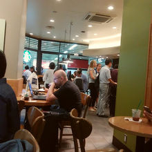 成田空港に到着して、電車で帰宅する際に出発時間までそれなりにある際に利用します。客席数は決して多くないですが、客の回転が早いためか座れなかったことはないです。接客接遇はスターバックスクオリティで非常に良いです。スーツケースなどの大きな荷物を客席近くに持ち込めないのが難です。お味の方はコーヒー専門店だけに種類も選べますし、スタバらし商品もあります。駅改札口の前のお店ですが、意外にざわつかず落ち着きます。