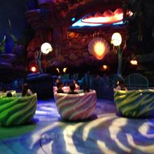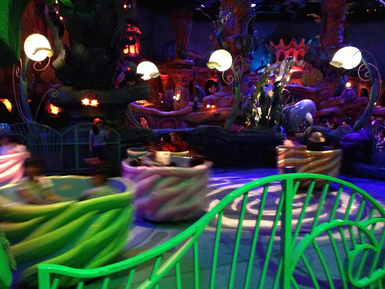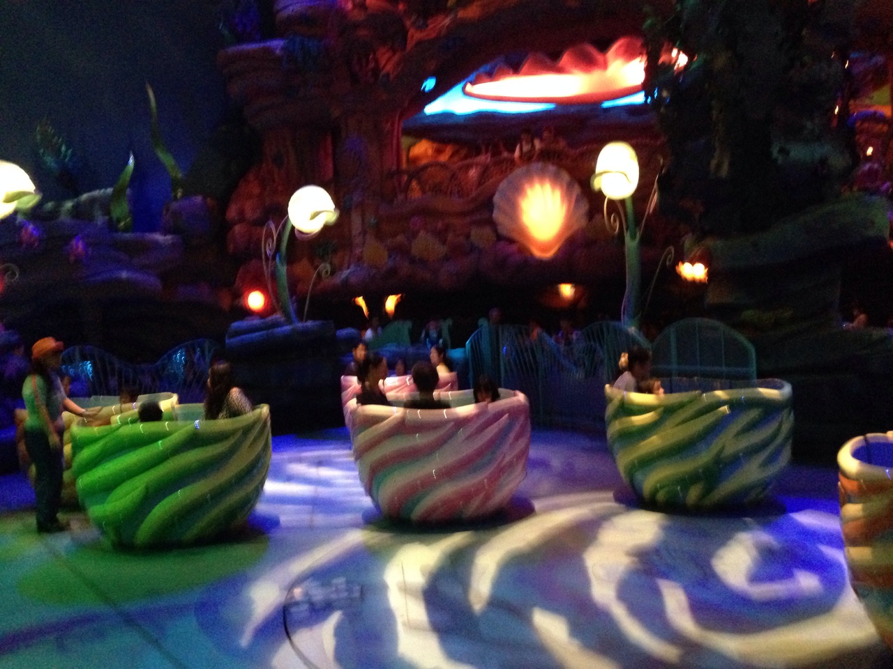 マーメイドラグーンのトリトンズキングダムには 就学前児童向けのアトラクションが多数あります。こちらもその一つで 昔ながらのシンプルな『遊園地の乗り物』タイプ。このゾーンはみんなですが、あっという間にライドが終わってしまう。