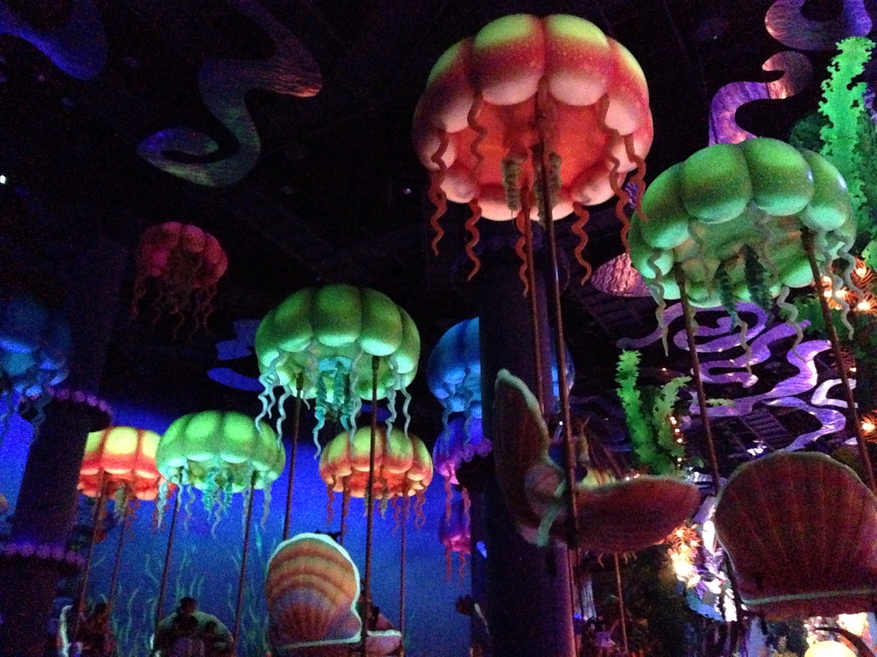 スーッと上がって ほんの少しビヨンビヨンするだけのクラゲの乗り物なのですが、実際乗ってみると結構高さがあり『おっ!』って思う。マーメイドラグーンの景色が全体的に見えるのがとても楽しかった。