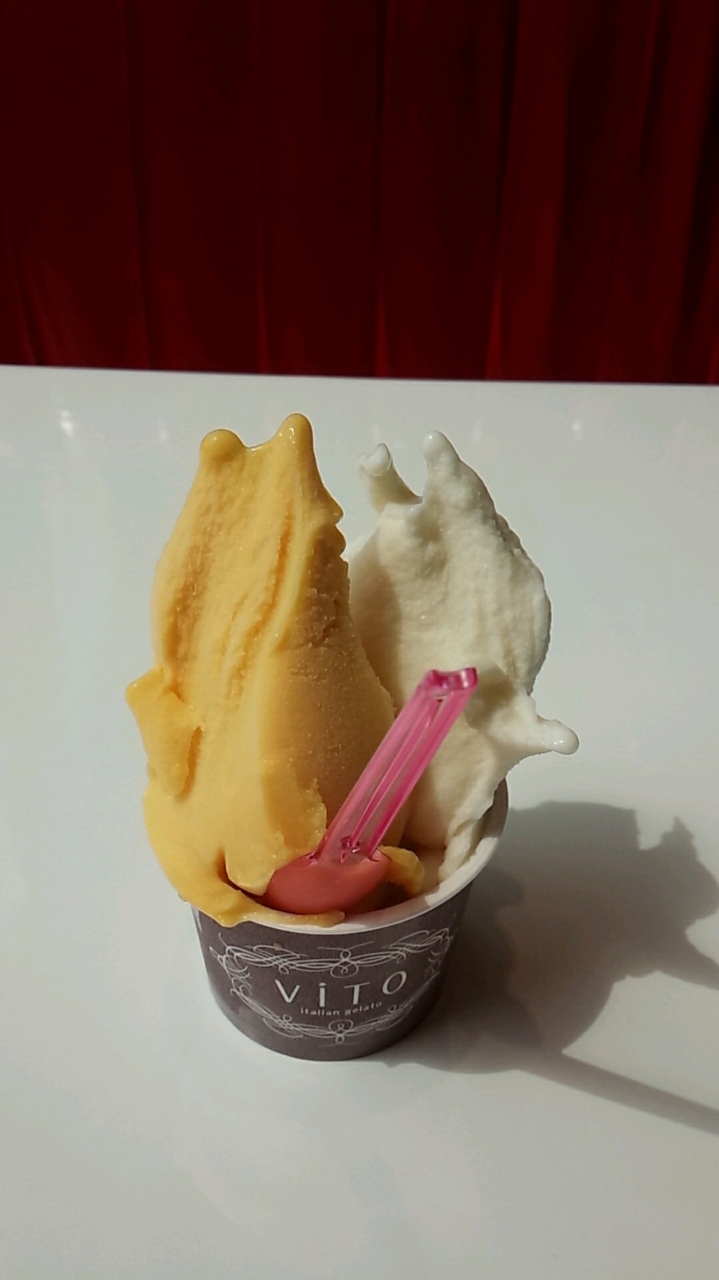 福岡発のイタリアンジェラート店で、千葉ではここにしかないようです。関東では東京の浅草、埼玉、神奈川に各一件しかないようです。2種類でも、1種類でも量が同じなら値段は同じ(450円)なので2種類食べた方がお得な気分です。