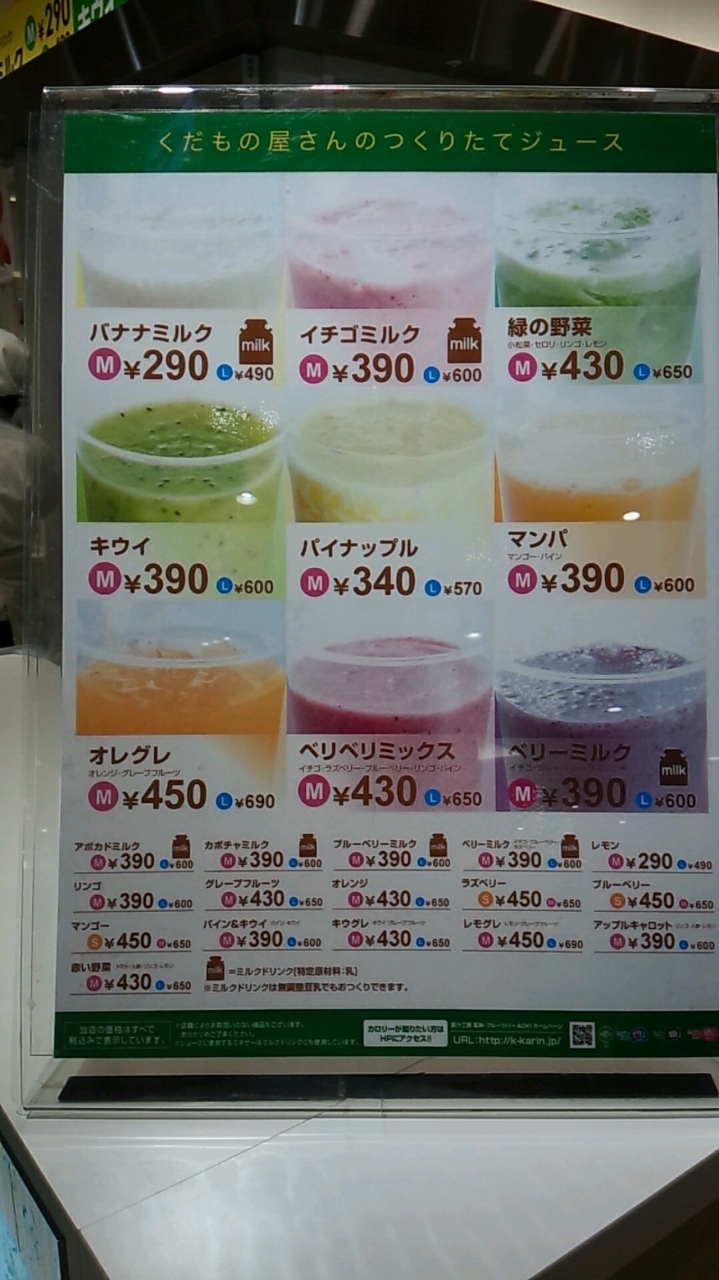 大き目のイオンモールなどにはよく入っているフルーツジュースの店なので、たまにフレッシュなフルーツジュースを飲みたい時に買います。季節に応じてその時にセールしているジュースがあったりするのでそれを試してみてもいいかもしれません、今回はぶどうでした。