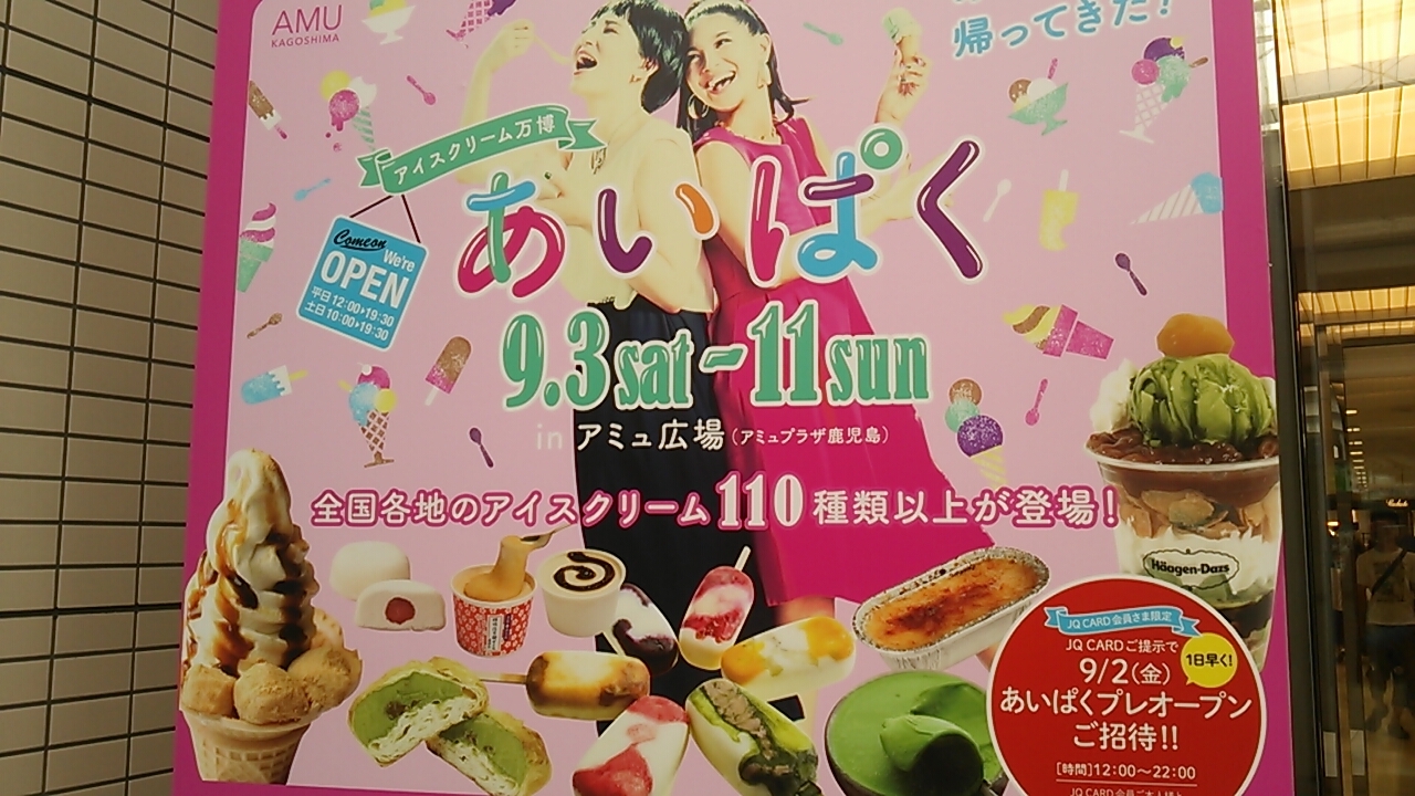 2016年9月3日の土曜日~2016年9月11日の日曜日の期間中、アミュ広場にて「あいぱく」こと「アイスクリーム万博」が開催中です。