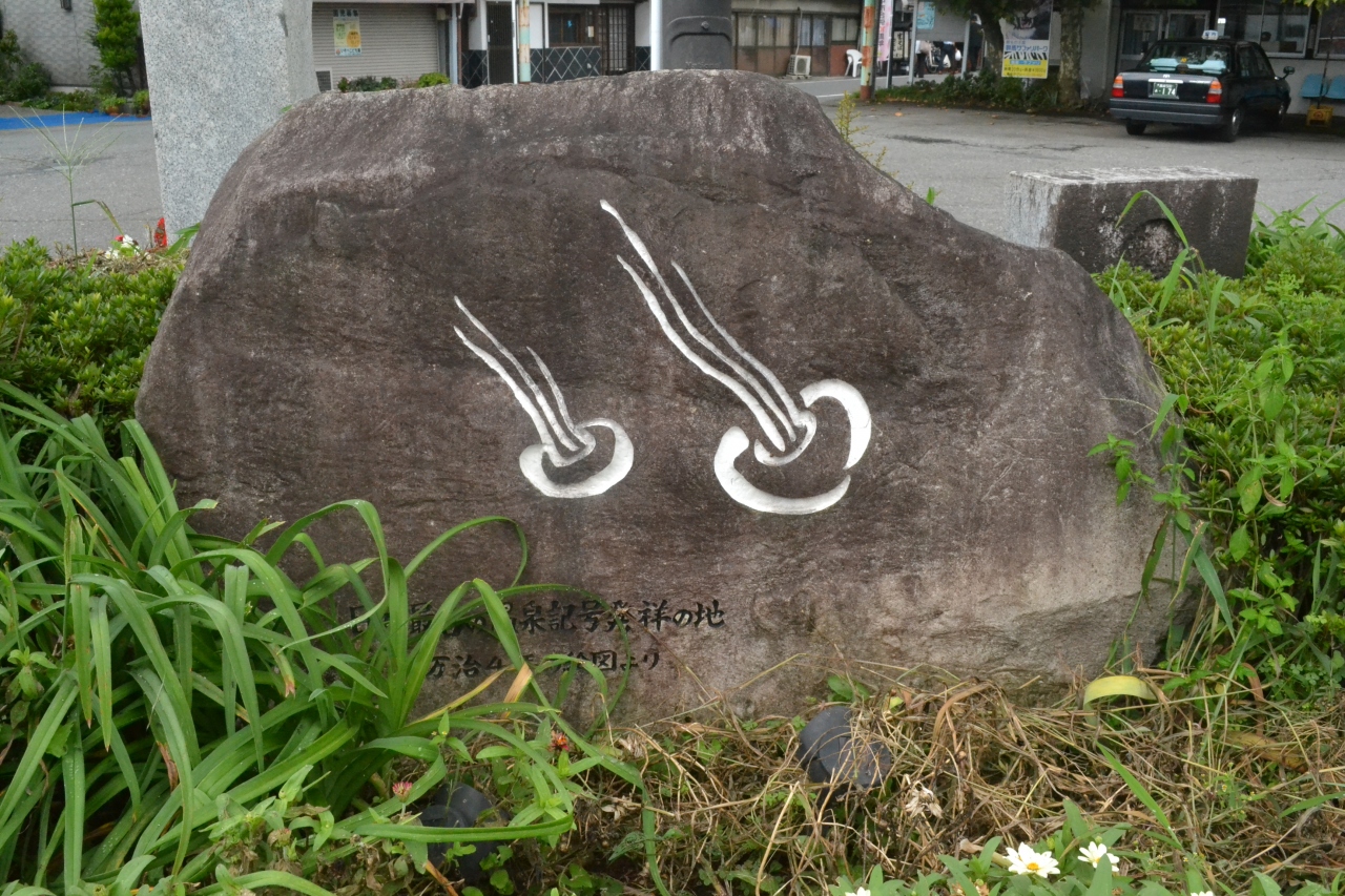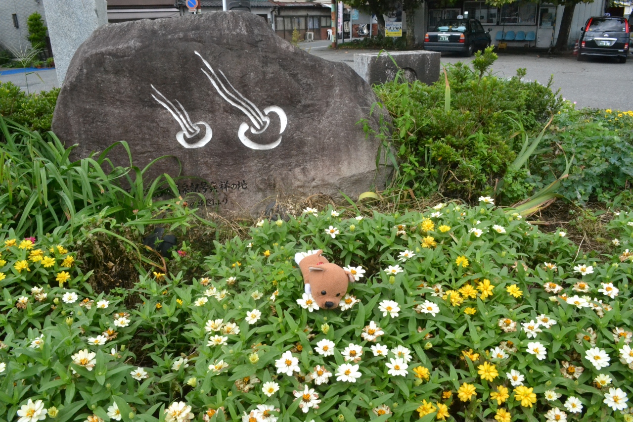 JR信越本線の磯部駅前に温泉マークが書かれた石があります。