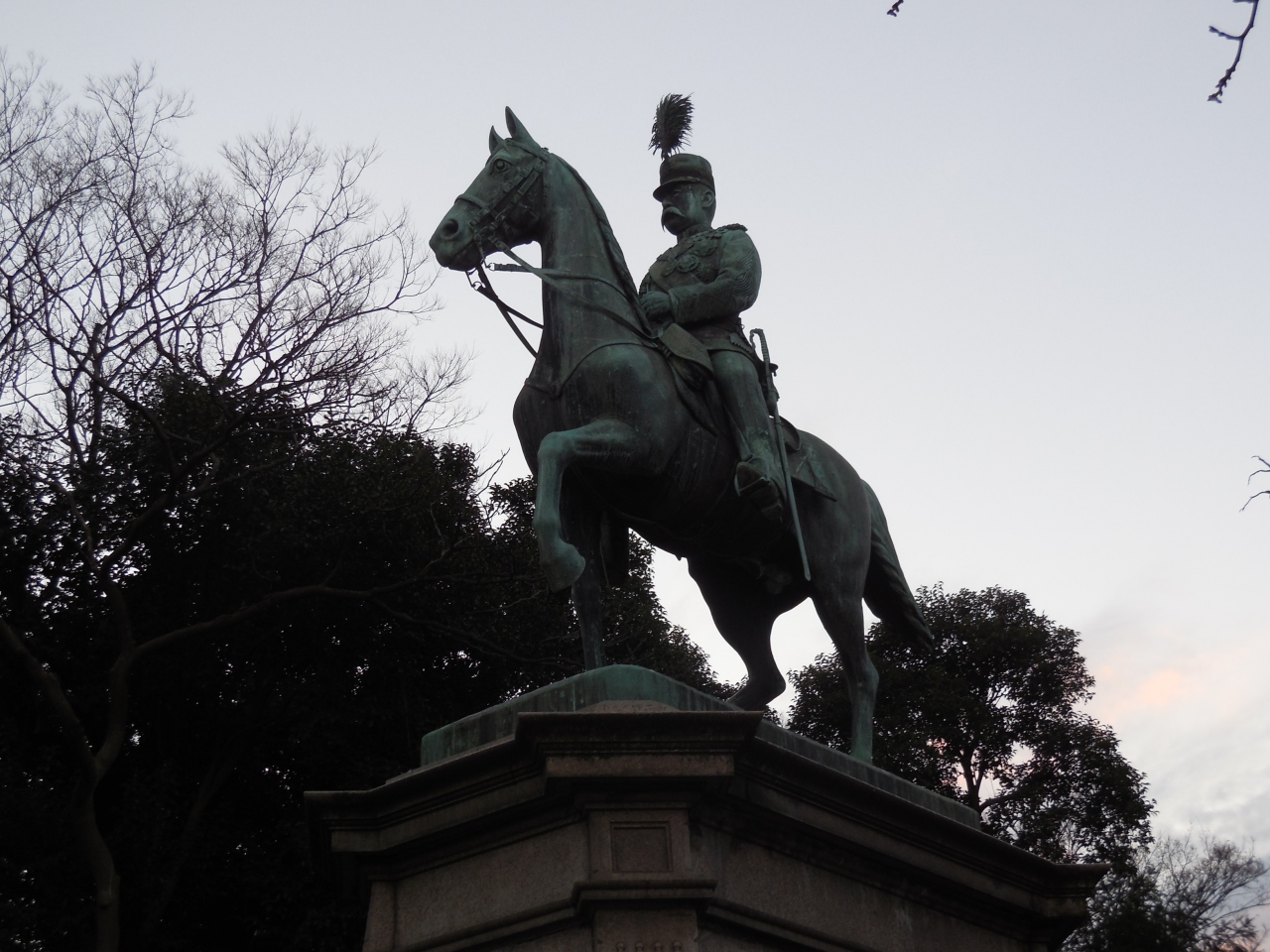 JR上野駅の公園口から上野動物園に向かって上野公園内を歩くと、動物園入口の左手にある銅像です。この銅像は比較的大きく、馬に跨った精悍で躍動感がある姿が印象的です。彼は戊辰戦争や西南戦争に出征して活躍したのち、日本赤十字社の総裁にもなった活動的な皇族でした。