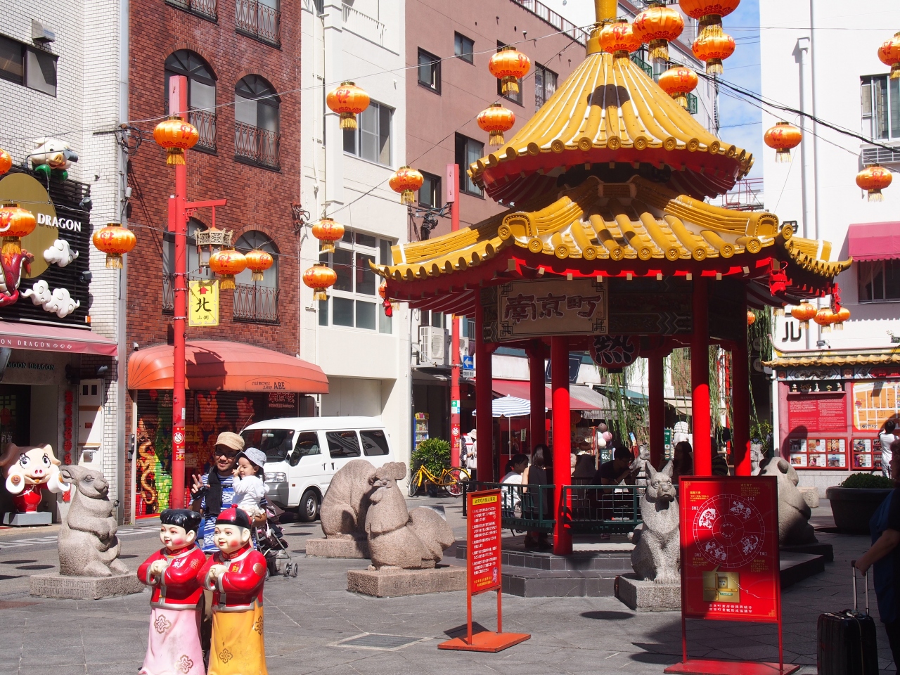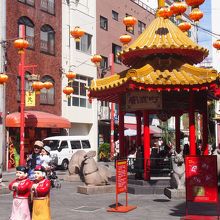 神戸元町の南側にある中華街(南京町)の中央部にある広場です。広場の中央部には黄色や、赤が目立つ中華風の東屋もあります。土曜日の昼頃に訪れましたが、混雑していて広場のベンチで座って休んでいる人やテイクアウトの饅頭などを食べている人もいました。