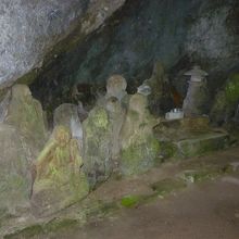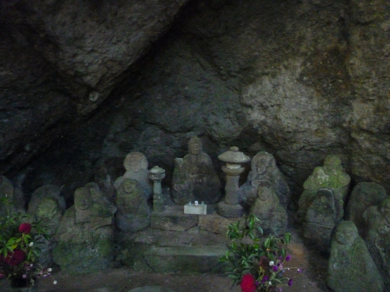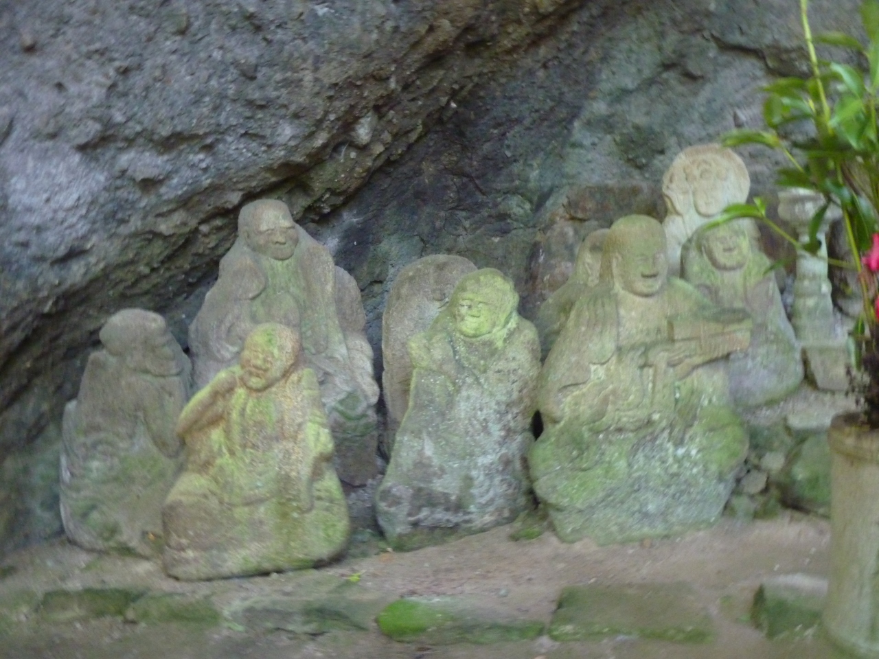 羅漢の森公園に車を止め、感状山城跡入り口沿いに小川のせせらぎを聞きながら森林浴をして、坂道を登ると苔むした大きな岩戸の間を潜ってゆくと、祠がある。その中に十数体の石仏がお祀りしてある。室町時代のものといわれ。ここにあちこちから集められたといわれているが、その謂われは定かでなく遠くいにしえのロマンを感じる石仏です。