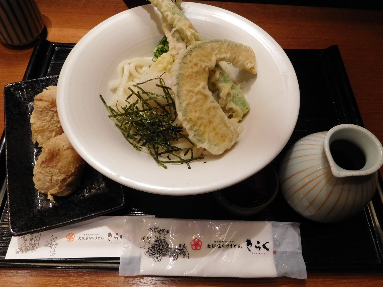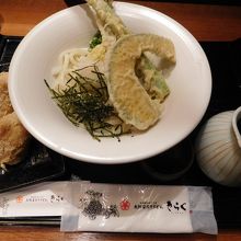 あべのハルカス近鉄本店タワー館B2階の「あべの市場食堂」エリアの一番奥にあるお店です。買い物客の利用が多いので、一人でも気軽に入れる雰囲気のお店でした。折角大阪に来たので、「大阪」のものが食べたいなぁ、と考えていたので、ちょうど良かったです。日替わりおうどんの定食を注文しました。ぶっかけのおつゆは、温かいのと冷たいのと選ぶ事が出来ました。揚げたてさくさくの天ぷらも美味しかったです。メニューはうどんの他にも、丼ものもあり、男性客でも満足出来るようなボリュームのあるメニューもありました。料理が出てくるのも結構早く、なかなか美味しかったので、良かったです。