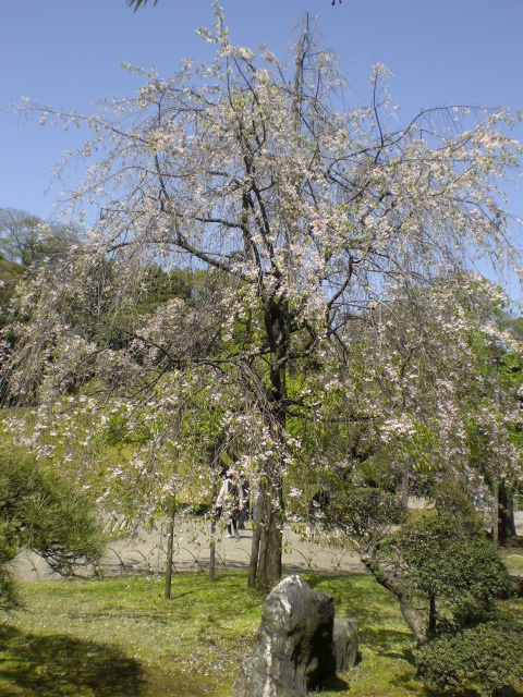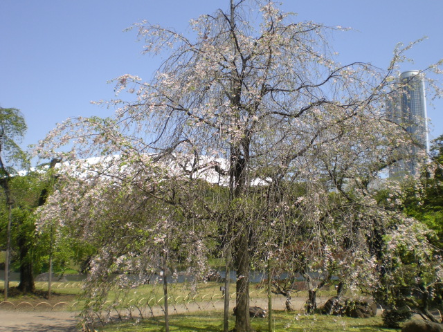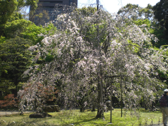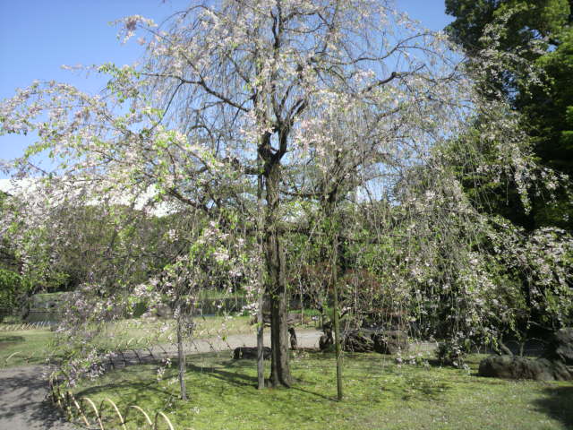 ソメイヨシノよりも1週間程早く咲きはじめるシダレザクラの中でも、入り口正面にあるものが見事で、小石川後楽園を代表するシダレザクラとなっています。