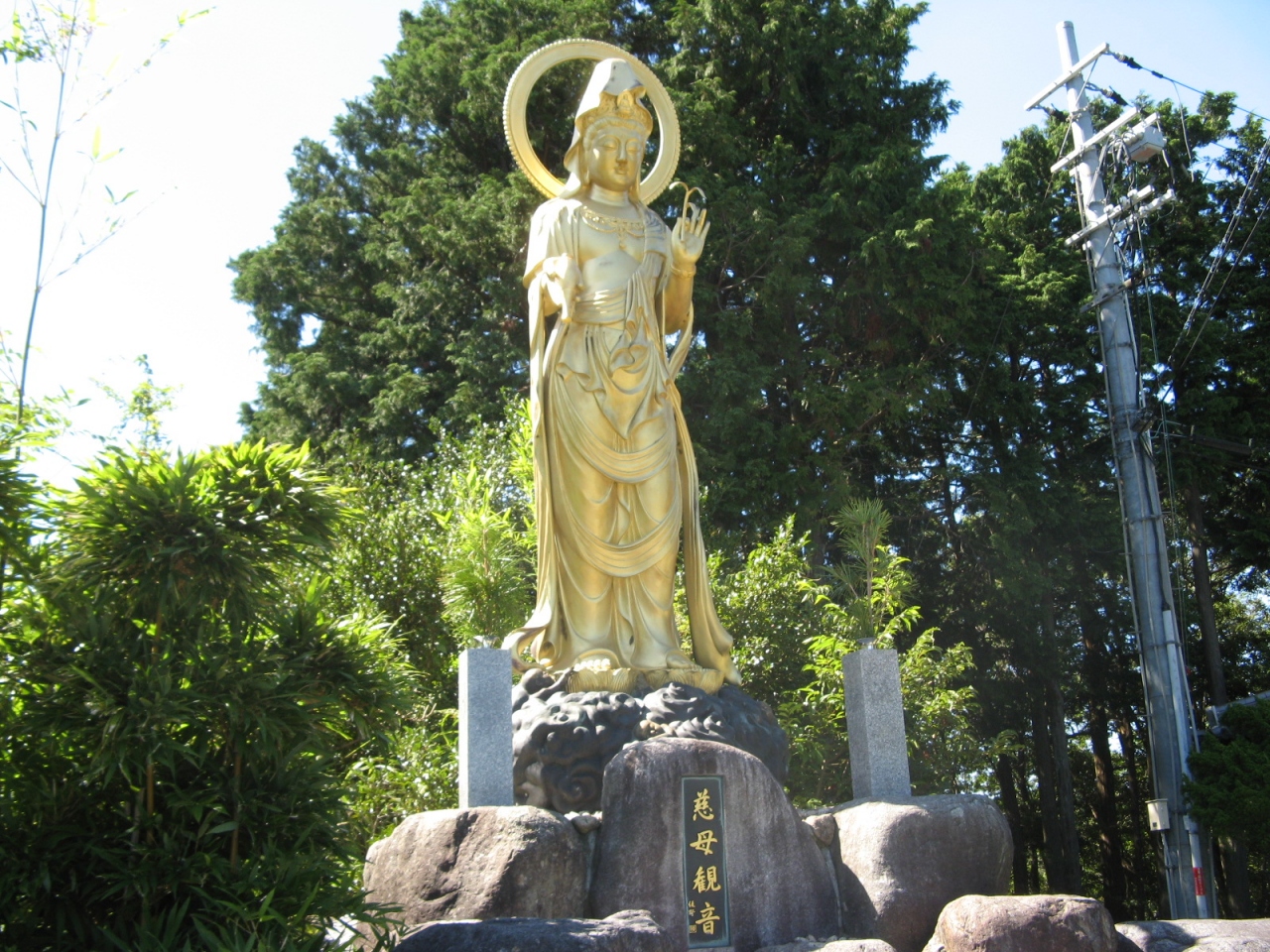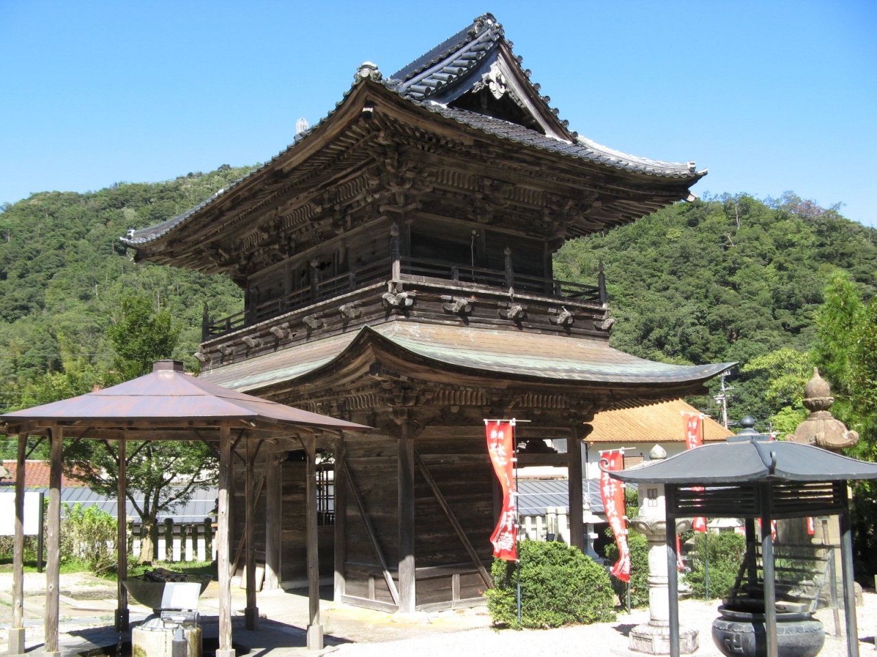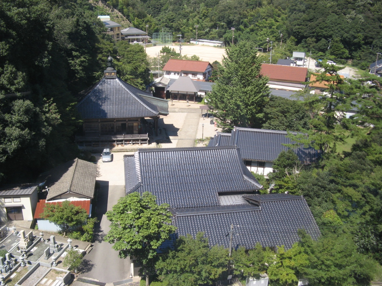 城崎ロープウェイで山頂駅まで行き、山頂から山道を歩いて下り温泉寺に参拝しました。頂上駅近くには温泉寺の奥の院、慈母観音像などがあり、そこから山道を15分ほど下って行くと温泉寺の本堂や多宝塔があり、さらに10分ほど下ると温泉寺の薬師堂や山門に至りました。