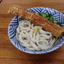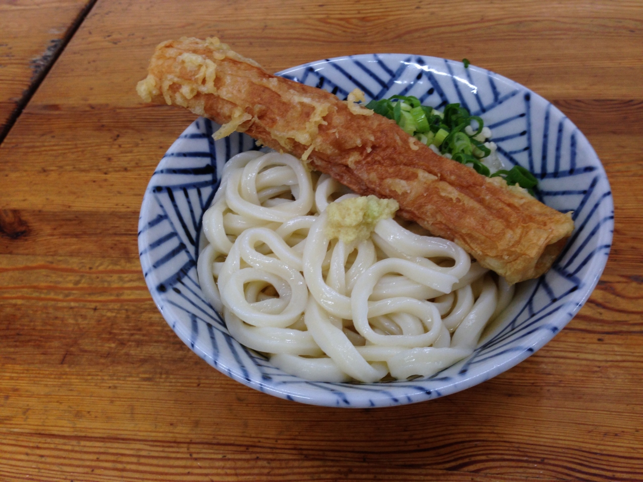 讃岐うどんはしょうゆかぶっかけが好きですが、あの大きなタンクからジャーっとおだしをかけたいが為にかけうどんを選択。そしてちくわの天ぷら。一番最初に食べるうどんとしてふさわしいスタンダードなおいしさです。地元の人の談ではさか枝はやはりおだしがおいしいとのこと。