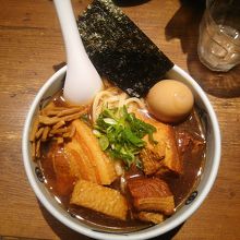 新宿の言わずと知れた有名ラーメン店です。老舗ということになりますか。人気絶頂だった時は長蛇の列でしたが、平日ランチ時で並ばず入れました。店内は外国の人が多いです。ラーメンは魚介系と鶏ガラ豚骨のダブルスープで、太めのちぢれ麺とよく絡みます。醤油の甘みがあ薫るしっかりした味わいで、久びさに満足できました。