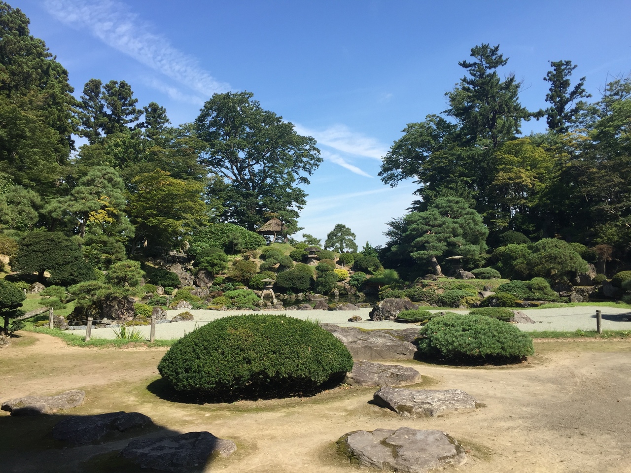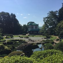 借景を入れた庭園を眺めるのは 残念ながら立ち入り禁止の2Fから眺めるように造られているとのこと。