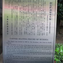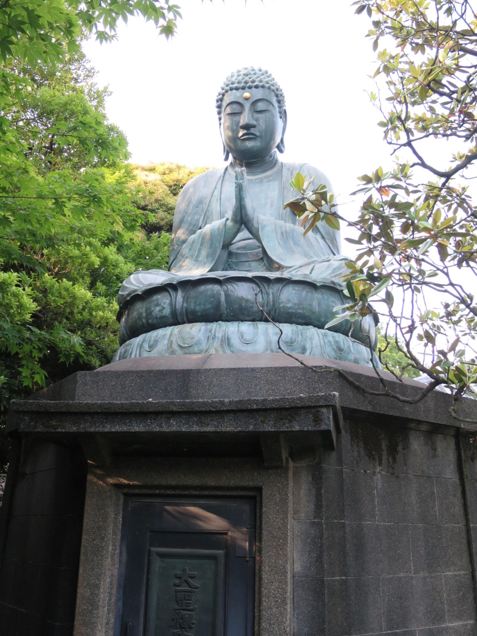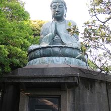 谷中を代表する寺院、天王寺の境内に銅造釈迦如来坐像はあります。天王寺には再建されて本堂等、古くあるものはあまりなく、銅造釈迦如来坐像もコンクリートの台座に鎮座しており、こちら新しい像かと思いきや、案内板を見ると天王寺大仏と言われる由緒ある古い像でした。天王寺ではこの銅造釈迦如来坐像位しか見物はありません。