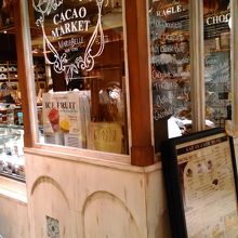 カフェも併設されています。プレゼント用の可愛い缶入りも目にとまりましたが、自分用には計り売りで袋に入れてもらうのが、経済的。試食も少しあるので、味を確かめてから、購入できます。