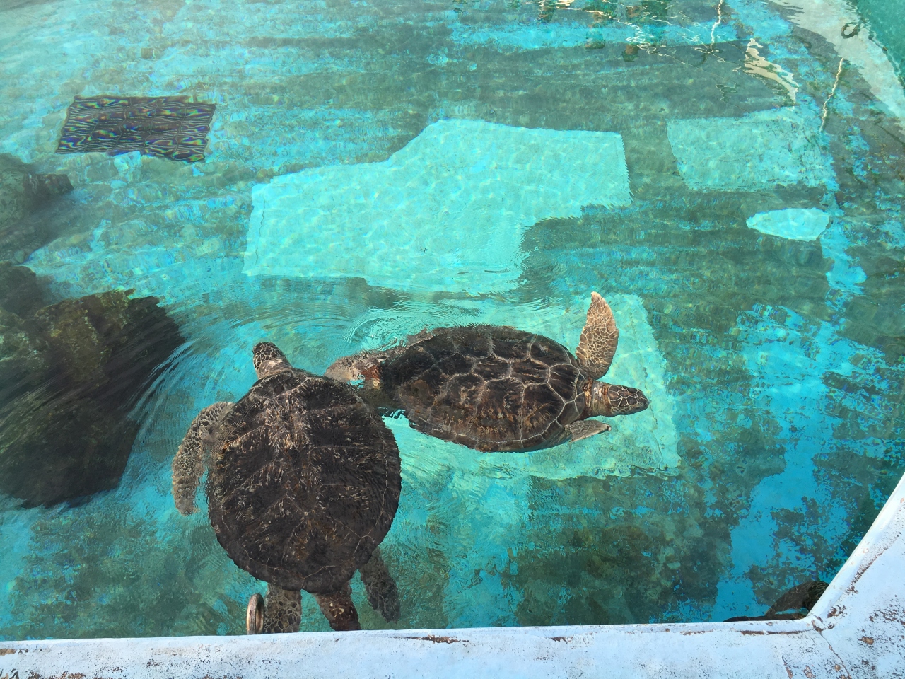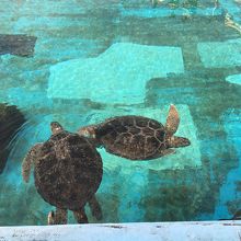 イルカラグーンとマナティ館の間にあります。たくさんのウミガメを一度に見れる貴重な場所です。真上からだけでなく、地下に入って真横から見ることもできます。水槽の前に行くと、優しい目をしたウミガメが近寄ってきてくれて一緒に写真が撮れました。