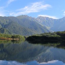 まだ朝早かった(8時頃)からか、そこには鏡にような湖面に穂高の山並が写って、大変美しいものでした。