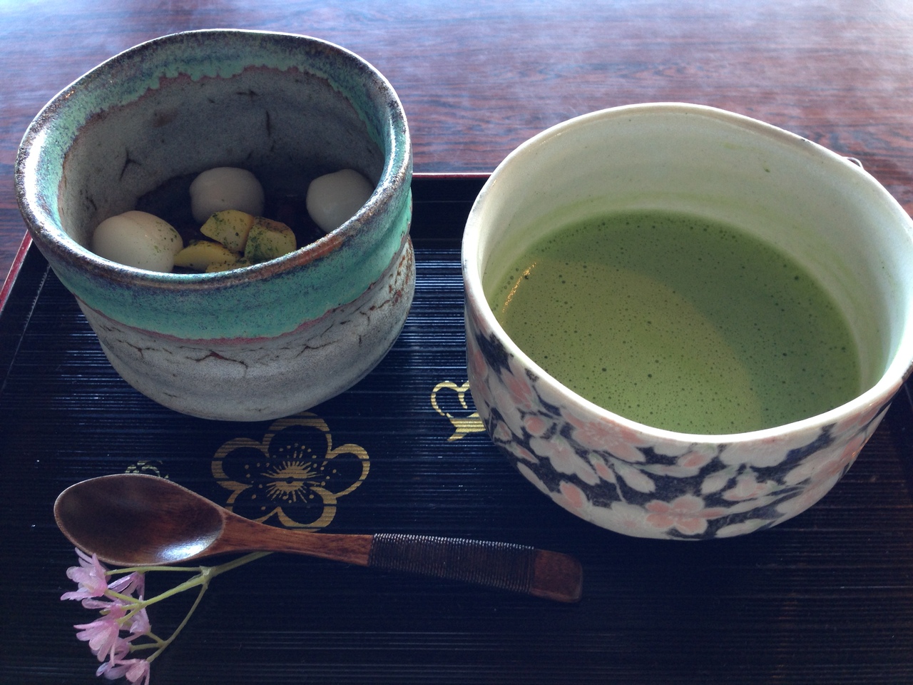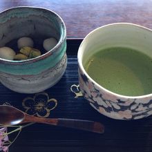観覧券は大人1人200円。甘味とお抹茶は観覧券を購入するタイミングで注文します。私は冷やしぜんざい(700円)を注文しました。注文すると番号札が渡されます。履物を脱ぎ座敷に座って待っていると係りの方が注文の品を運んできてくれました。