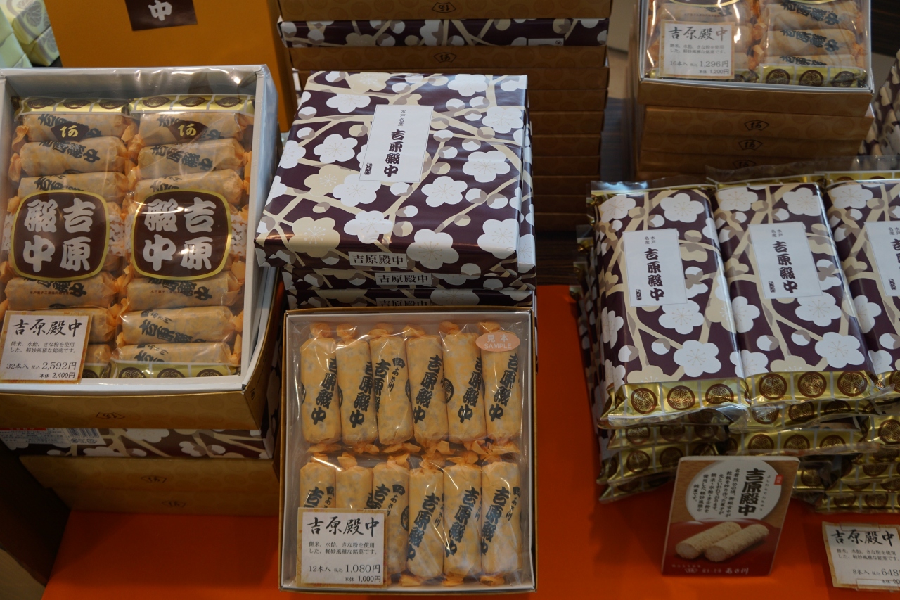 あさ川 エクセルみなみ店は、水戸駅の南口からエクセルに入ってすぐ。人気商品という吉原殿中をお土産にしました。徳川斉昭の時の奥女中が乾飯を炒りつくった菓子が元というのですが、埼玉の五家宝とちょっと似た感じ。もう少し柔らかいかなあというくらいです。