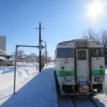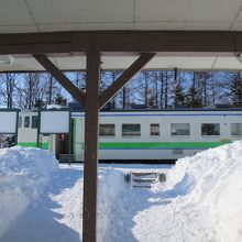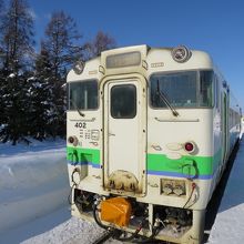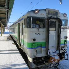 札幌側は6両編成の通勤形電車の乗り入れ、運行本数も多いのに対し、新十津川側は、非電化ローカル線で本数も限られます。