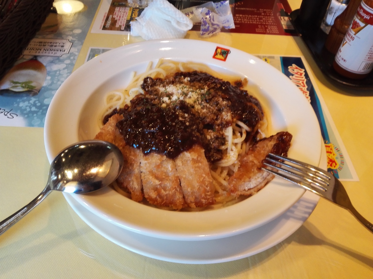 トンカツにミートソースの組み合わせは初めてでしたが、意外と相性が良くパスタの具にピッタリでした。