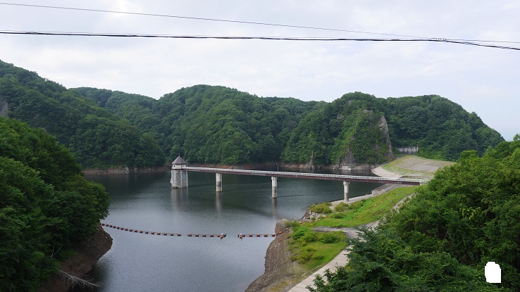 函館から中山峠を経て江差方面へ。途中の国道わきにみられるダム。駐車スペースがあり、今後のルート確認を兼ねて休憩に利用した。ダム自体は1969年着工、30年以上の歳月を経て2001年竣工。農業用灌漑用水専用のダム。規模は大きいように感じた。