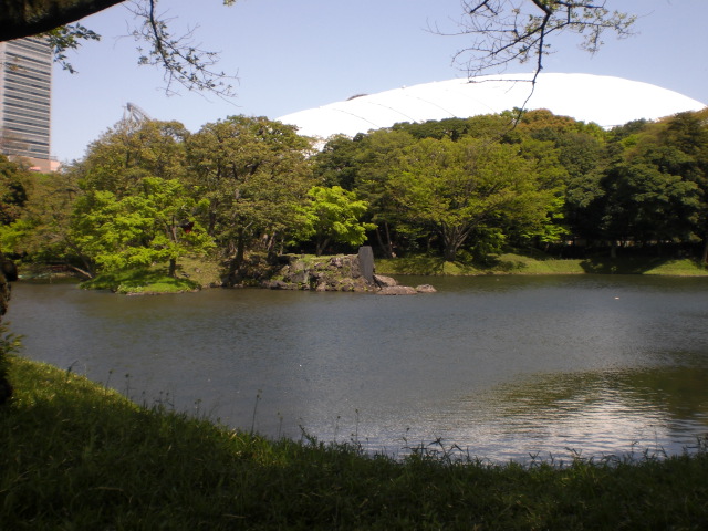 小石川後楽園の入口に近くに、小石川後楽園の中心となっている大泉水があります。