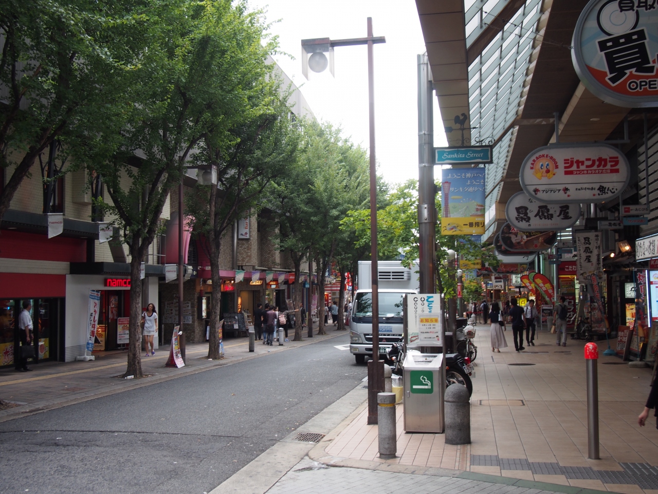 阪急電車の線路の北側にある道路にある商店街です。通勤客なども多く利用するためか、割とお手軽な値段の飲食店も多いです。よくみかける大手チェーン店も多いです。昼間は割と閑散としていますが、夜は少し混雑してわいぜつな感じにはなります。