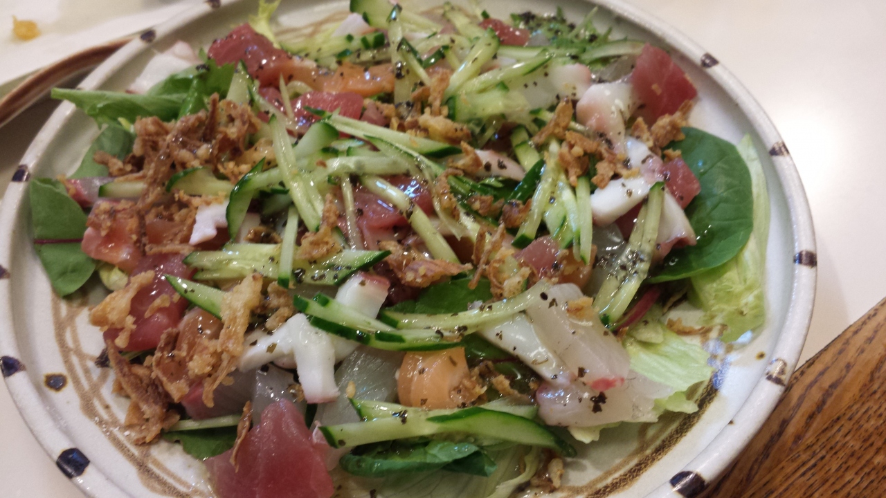 中の様子がわからず、気になりながらもずっと入れずにいましたが、入ってよかった!!いい感じの居酒屋さんです。コの字型のカウンター席が基本で、奥と二階にも席があるようです。