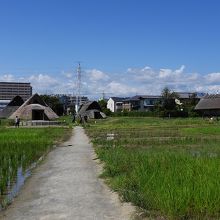 静岡駅からバスで約10分。弥生時代の農耕集落とされる遺跡。周辺は住宅地ながら当時の住居や水田を再現しており、古代ロマンを感じさせられる雰囲気。住居の中に入ってみることもできるほか、敷地内の博物館では発掘研究をわかりやすく展示し、より理解を深めることができる。訪問時は火おこし体験を実施しており、子どもの教育にもよい施設だと感じた。