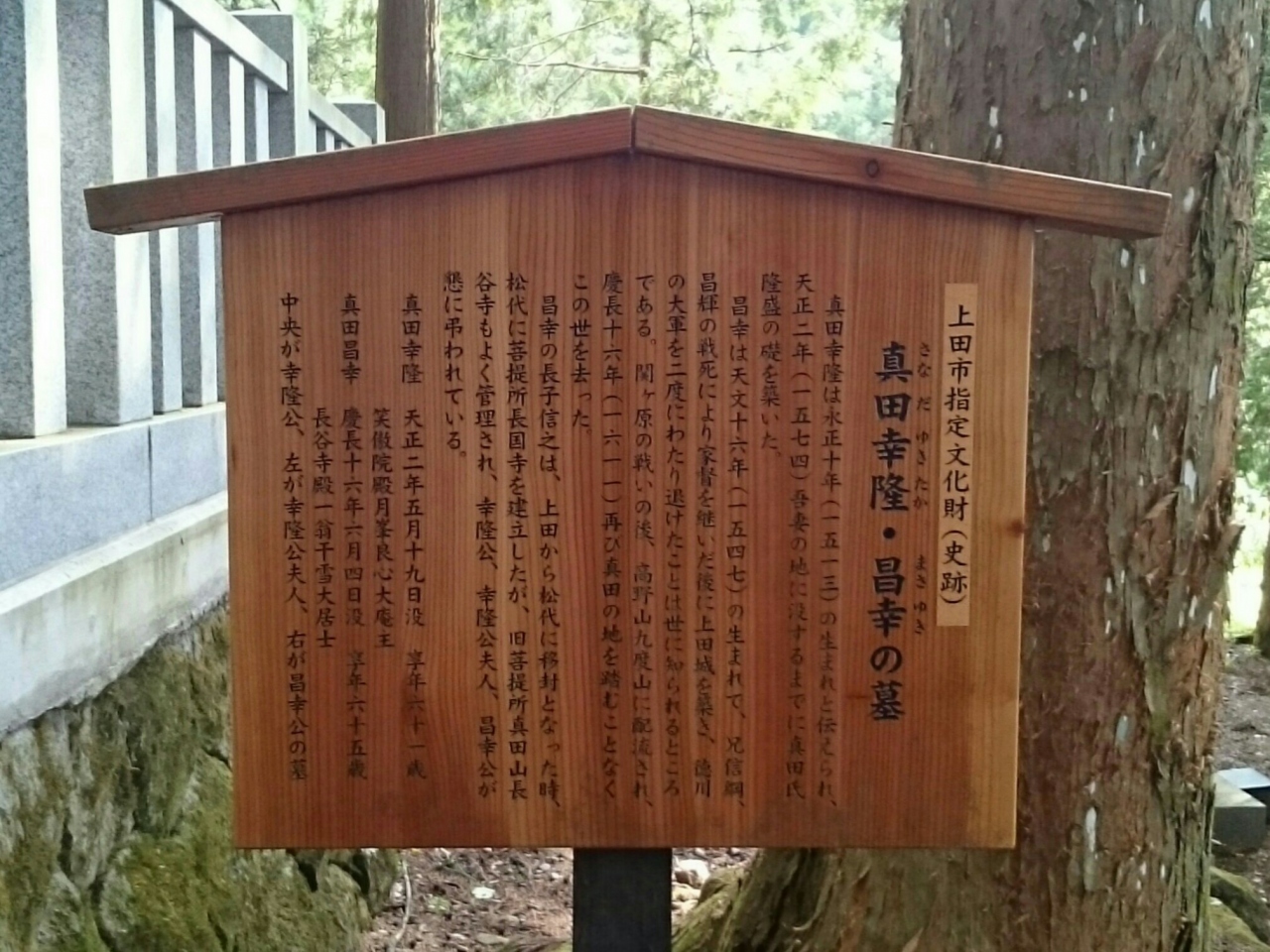 少し離れた所に近年建てられた幸村公の供養塔は新しくちょっと違和感がありますが、幸隆・昌幸公のお墓は歴史を感じるもので、硬貨を6枚並べ「六文銭」にしてお参りしたものが、たくさん供えられていました。