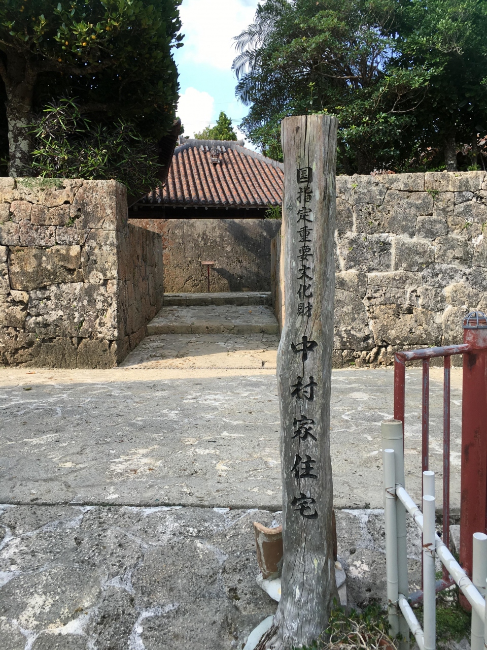 中城城跡から北上した場所にありました。約280年前の豪農住宅で、琉球王国時代の民家の構造を完璧に残している貴重な建物。国の重要文化財に指定されています。沖縄の気候に合わせた工夫が随所にみられる住宅でした。見学後に冷茶とお菓子をいただきました。