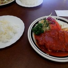 付け合わせはマカロニとサラダでした。
