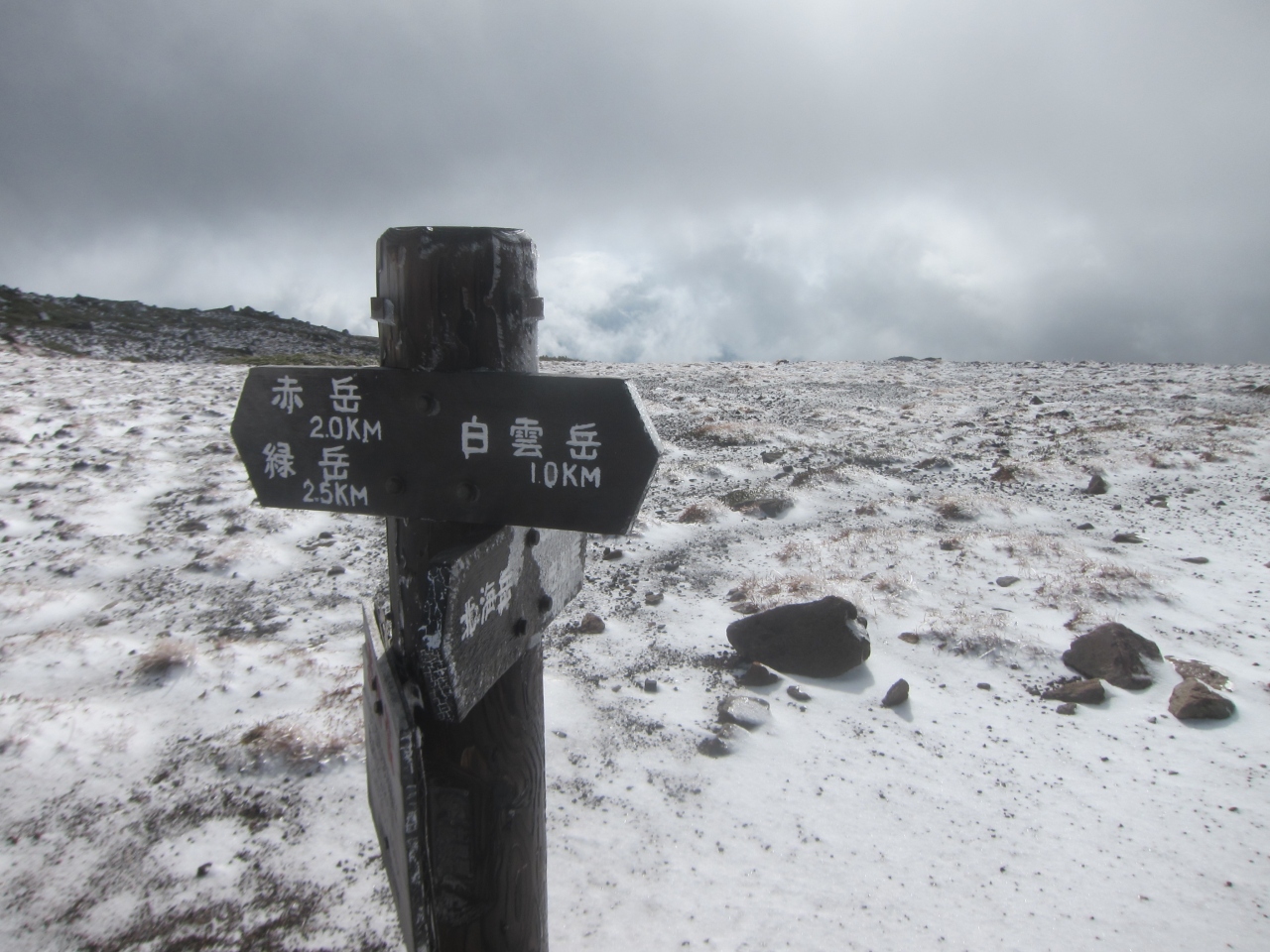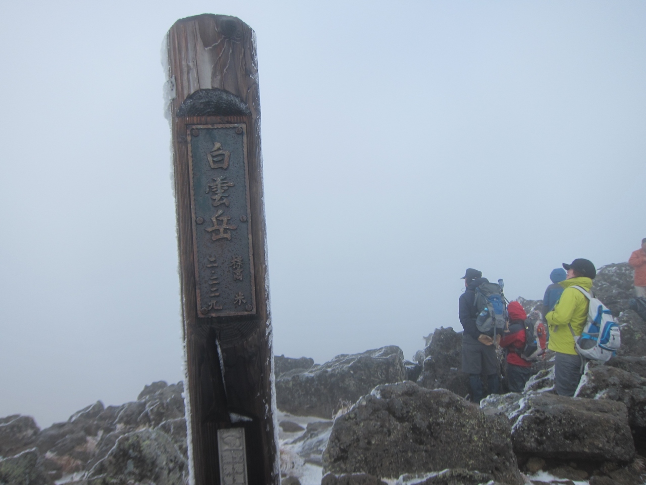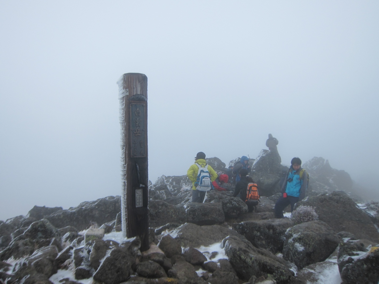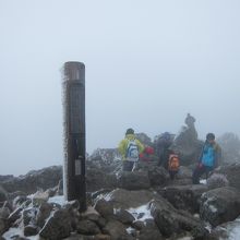 10月上旬、麓の高原沼では紅葉をまだ見ることができましたが、山頂では既に雪と氷の世界で、風も強く寒かったです。