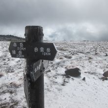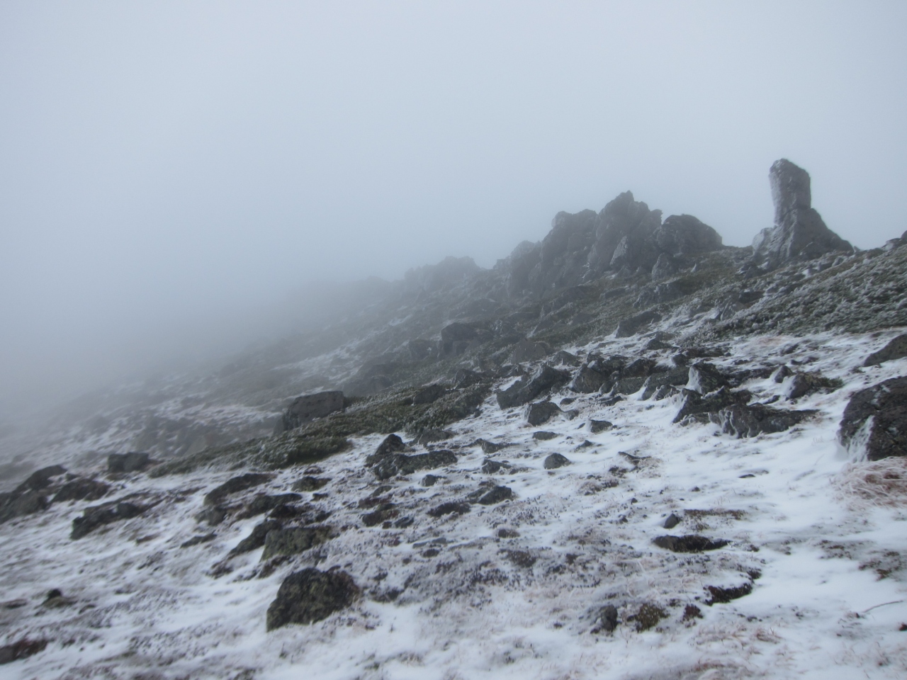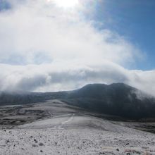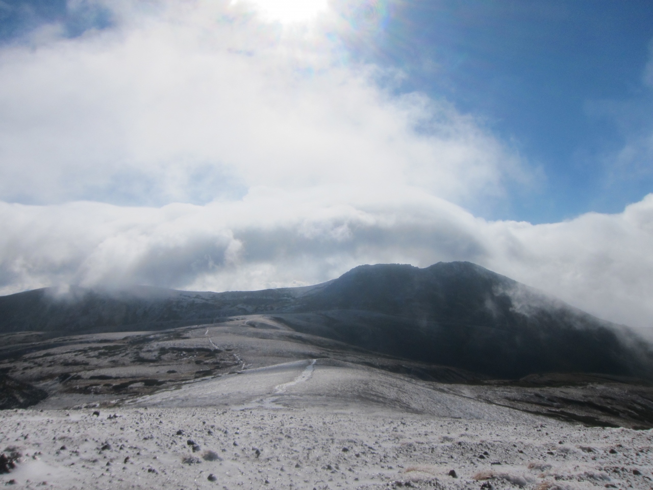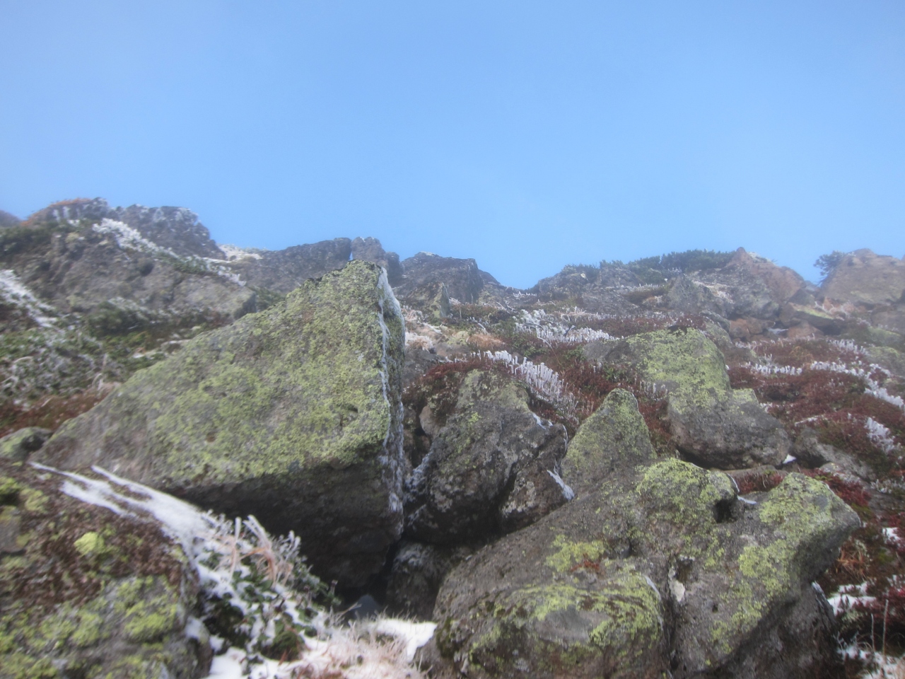 10月上旬、麓の高原沼では紅葉をまだ見ることができましたが、山頂では既に雪と氷の世界で、風も強く寒かったです。
