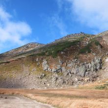 北側から眺めるとせり上がった高い丘のようにも見えますが、南側、白雲小屋や高根ヶ原方面から眺めるとしっかりした山群です。